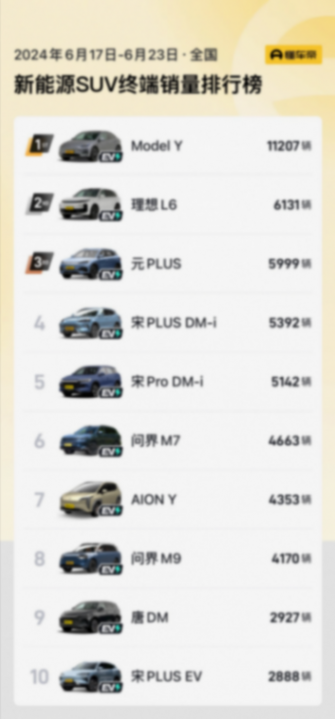特斯拉Model Y穩坐第一(11207輛),較前一周多賣了2201輛,品牌優勢還挺明顯的,即使內飾被人吐槽毛坯房。