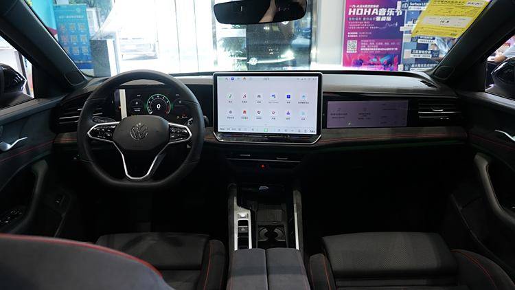 進入車內,全新一代邁騰的內飾設計同樣煥然一新。數字化座艙,營造科技豪華氛圍感,15英寸中控大屏、11.6英寸副駕娛樂屏以及10.25英寸液晶儀表,三屏可以聯動并且形成了一塊大連屏,信息清晰易讀,科技感直接拉滿。