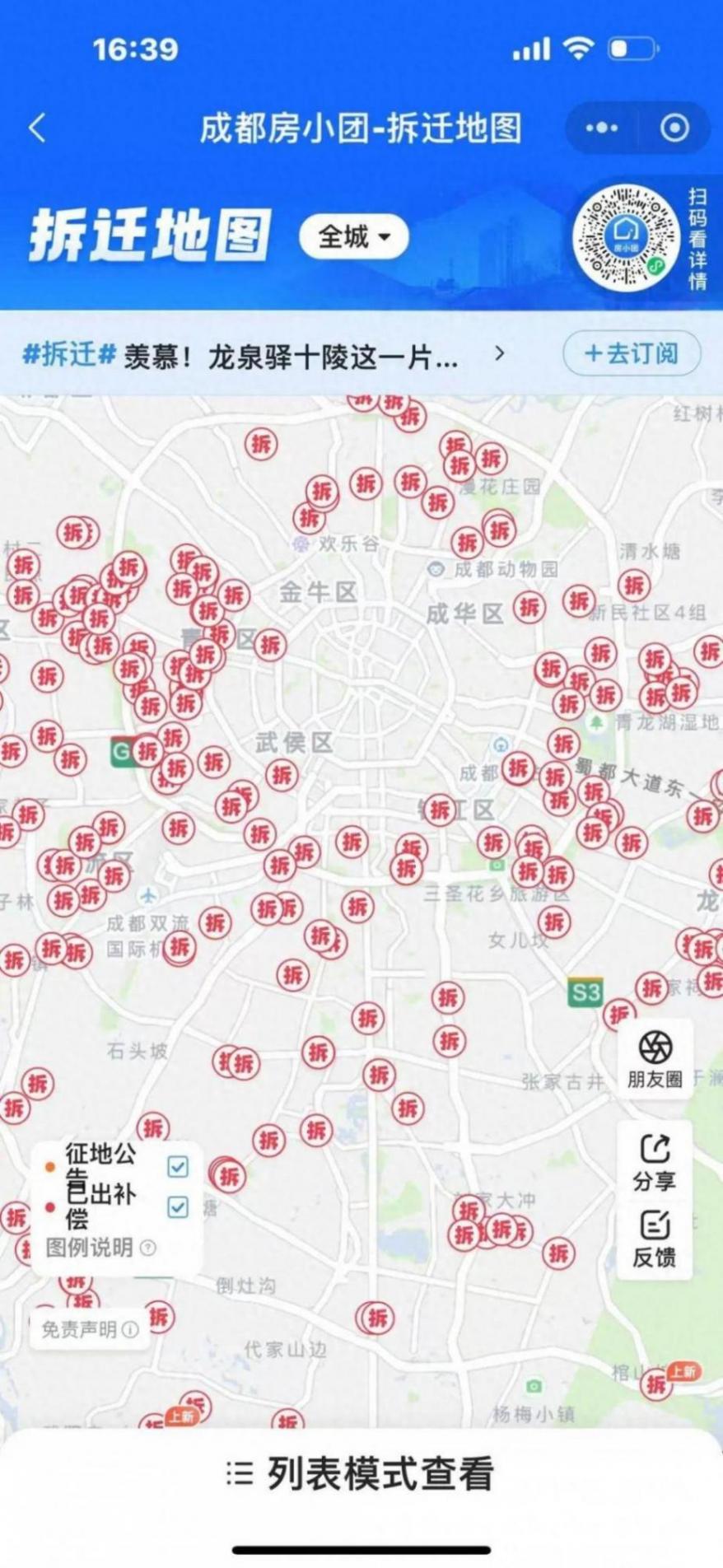記者查詢該圖片來源小程序(成都房小團)并對照相關政府官網文件發現,相關拆遷項目存在,但并非網傳的近日突然集中爆發,而是一年內或更長時期內陸續產生的。