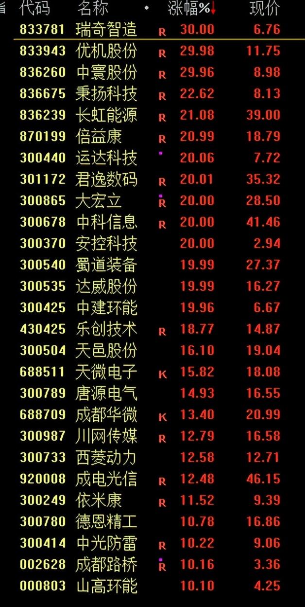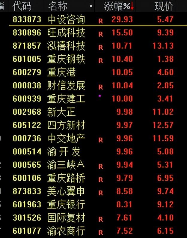 10月16日,A股成渝板塊爆發,四川路橋、四川金頂、成都路橋、重慶鋼鐵、重慶建工等近50股漲停。