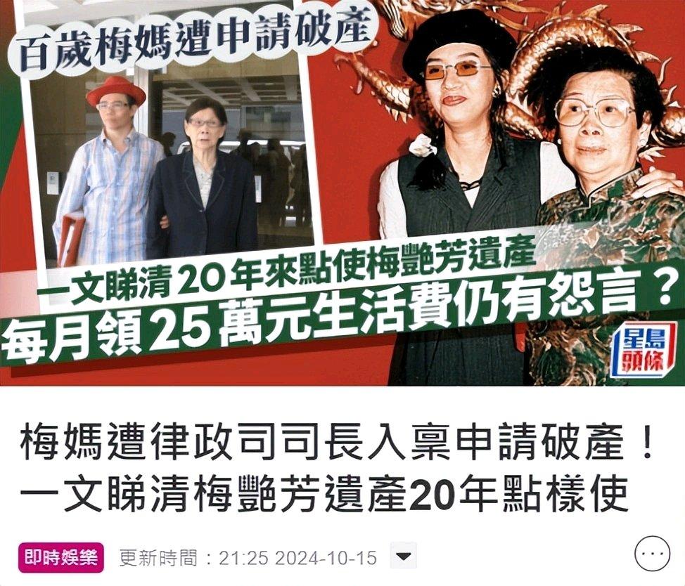 10月15日,據港媒報道,梅艷芳100歲的母親覃美金因為拖欠訴訟費被起訴,律政司司長申請梅媽破產,此消息一出引發了網友們的熱議。