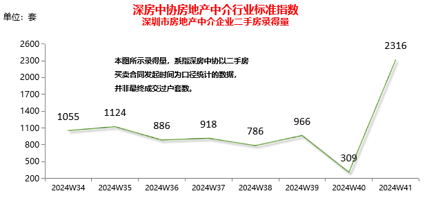 深圳市房地產中介協會指出,深圳“ 9.29政策”利好樓市效果顯著,因國慶假期期間二手房錄得數據存在一定滯后性,數據在本周得以體現,使得單周二手房錄得量超2000套,預計后期市場仍會保持相對高位水平運行。