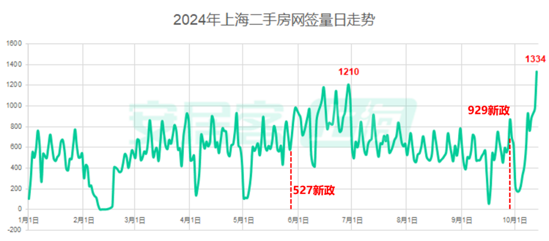 其中,上海于10月13日全市二手房網簽1334套,創下去年9月以來單日新高。