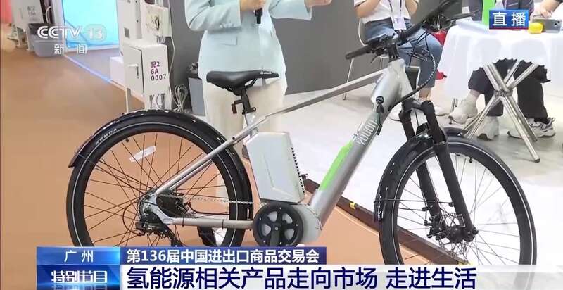 這款自行車,看起來和普通自行車沒什么區(qū)別,其實它是氫能自行車,由低壓便攜的氫氣瓶助力,讓爬坡、騎行更省力,它的速度最高可以達(dá)到20公里每小時。目前,國內(nèi)一些城市的共享單車已運用上這樣的產(chǎn)品。我國的氫燃料汽車的研發(fā)也已經(jīng)在路上,我們在廣交會現(xiàn)場也看到有的參展商展出了氫燃料電池發(fā)動機相關(guān)前沿產(chǎn)品。