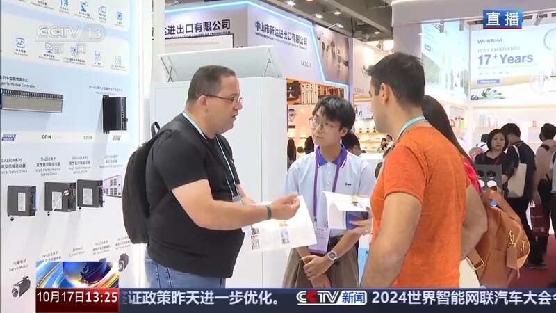 總臺記者 吳媚苗:我現(xiàn)在所在的位置是廣交會展館的14.3號新能源館,這里總共有110家新能源企業(yè)參展,現(xiàn)場可以看到不少海內(nèi)外采購商前來了解光伏產(chǎn)品、鋰電池等等新能源產(chǎn)品。
