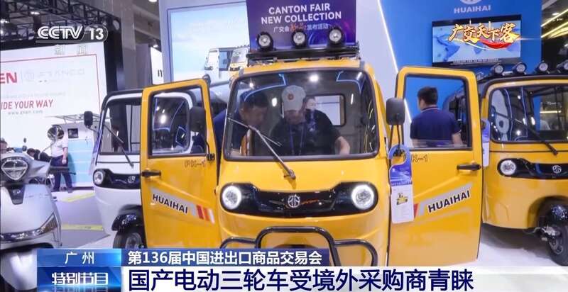 本屆廣交會上,在新能源汽車及智慧出行展區(qū)內(nèi),電動三輪車類目的展品以其便捷環(huán)保的特點吸引了眾多境外采購商的到來。