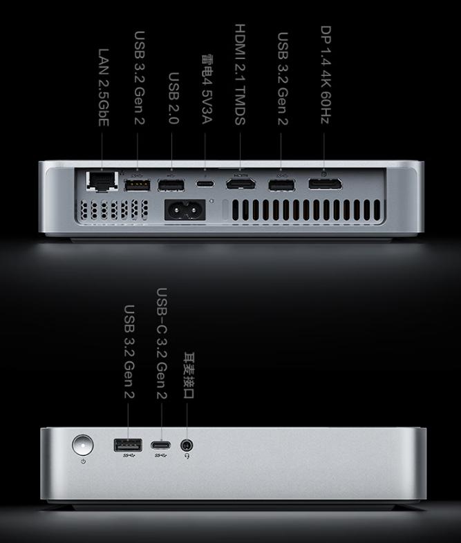 這款和mac mini很像,鋁制外殼,橫豎都可以放置。也是i5-13420H處理器,16GB內存,存儲升級到1TB M.2 SSD。有雙內存插槽,雙PCIe 4.0 M.2插槽。