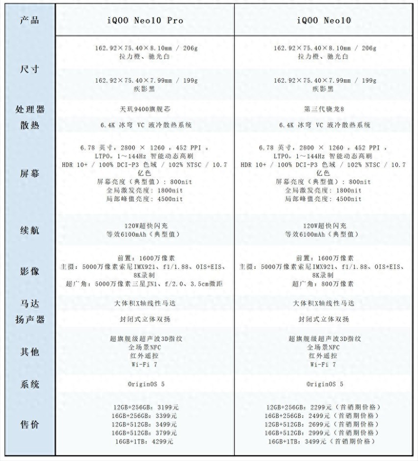 在剛剛iQOO Neo10系列正式發布,該系列此次共有兩款機型,分別是iQOO Neo10和iQOO Neo10 Pro,不同版本價格分別如下: