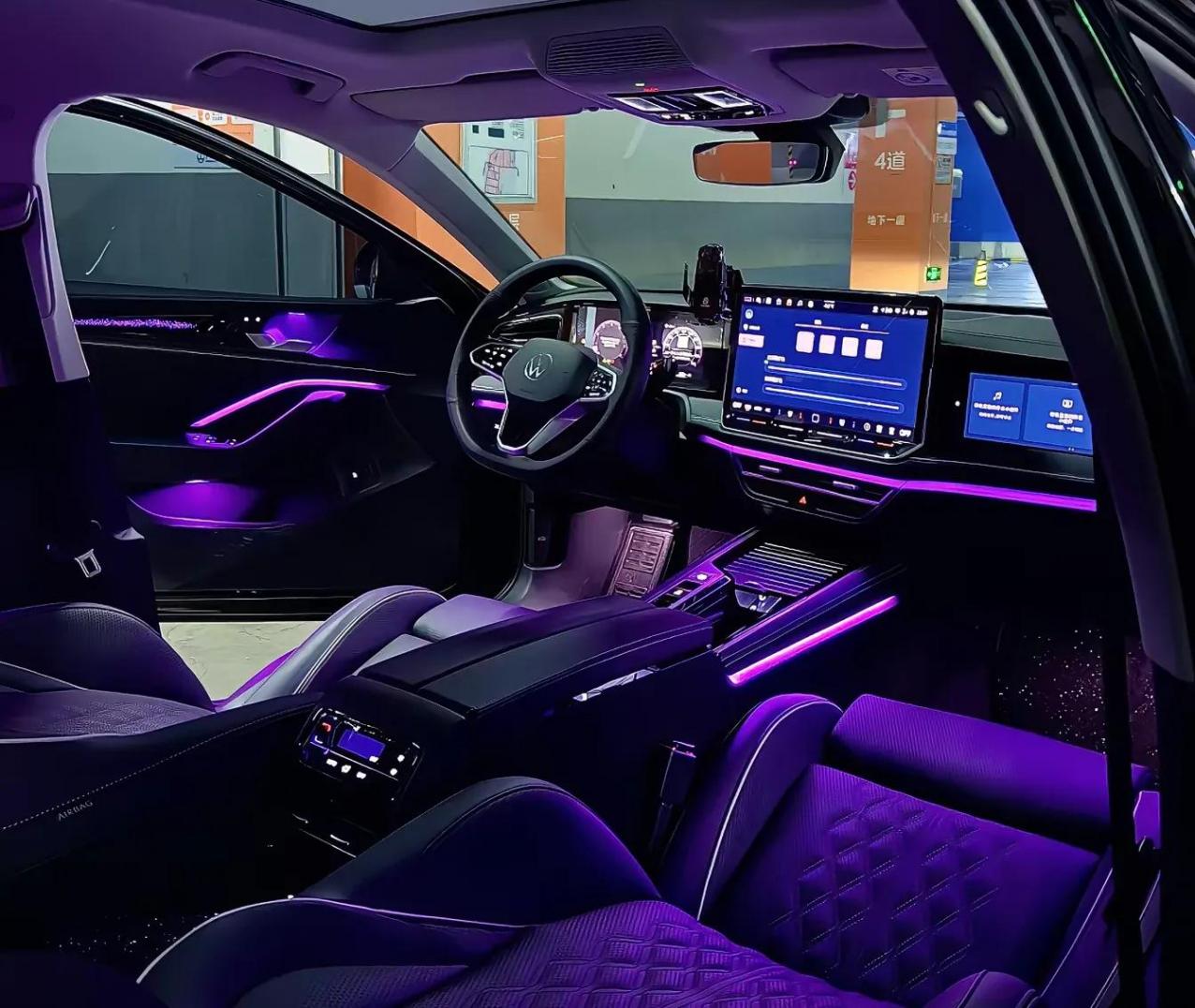 邁騰B9:布局簡(jiǎn)潔清爽,前排配備10.25英寸全液晶儀表、15英寸中控屏幕以及11.6英寸副駕娛樂(lè)屏幕,內(nèi)置高通驍龍8155芯片。采用30色車內(nèi)氛圍燈、大漠孤煙直透光飾條、仿皮座椅,細(xì)節(jié)處理精致,有打孔真皮座椅、軟質(zhì)包覆雙縫線等,電動(dòng)調(diào)節(jié)與記憶功能座椅提供舒適坐姿,采用懷擋設(shè)計(jì),中控臺(tái)更簡(jiǎn)潔。
