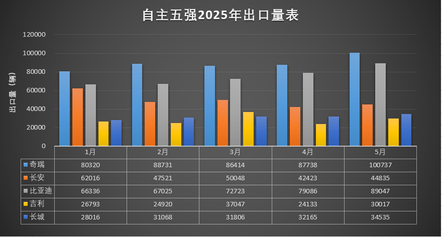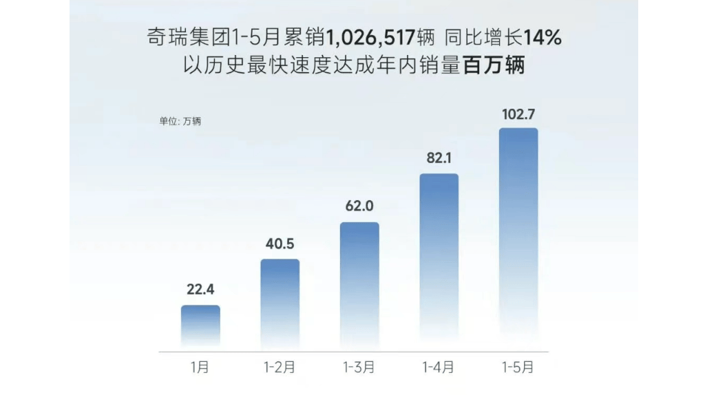 平均20萬輛/月,前五月累計銷量突破100萬輛,奇瑞2025年的速度確實“不客氣”。