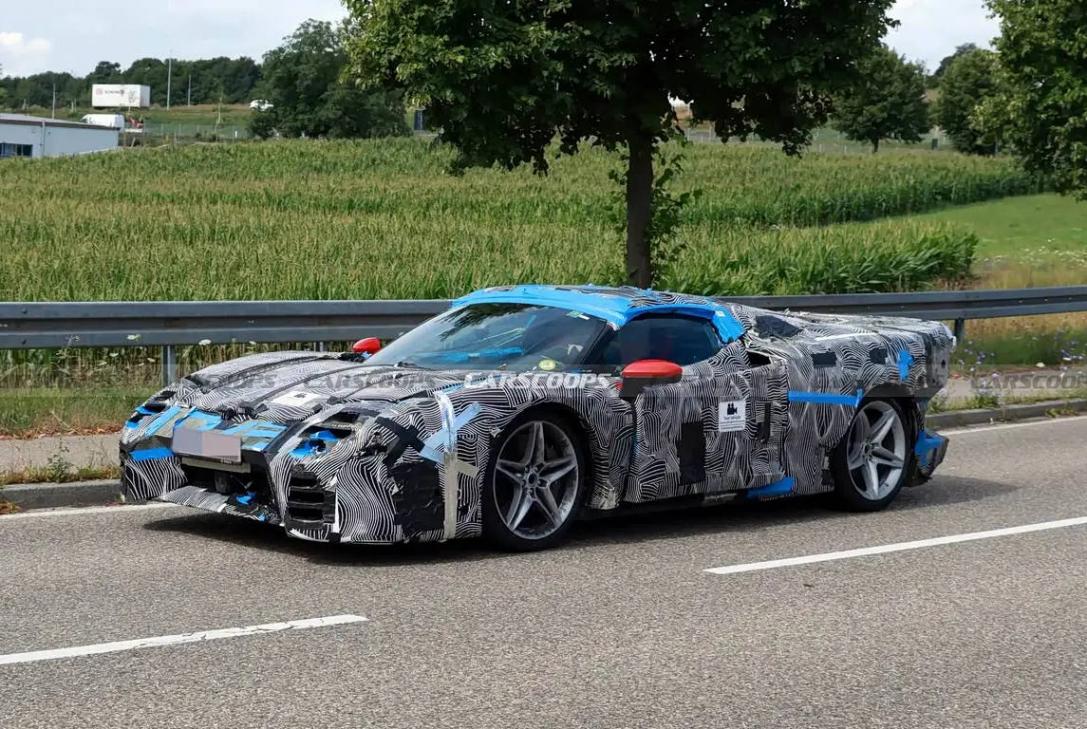 來看這組諜照,新車的整體造型輪廓與 SF90 有所區別,看上去更融合了 和 F80 的設計語言。車輛前臉兩側更加突出,中間為內凹的矩形造型,整體車頭顯得更加低矮扁平。預計車輛也將會配備全新造型的燈組。