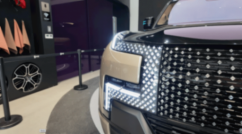 前臉部分,仰望U8L鼎世版延續了“鼎”為靈感的設計語言,車頭依然飽滿方正,兩側矩陣式鼎型大燈組看起來大氣、科技,而且前后車標均由24K黃金打造,還有前包圍兩側日珥金飾條點綴,豪華感拉滿,這也是其區分豪華版的設計亮點。