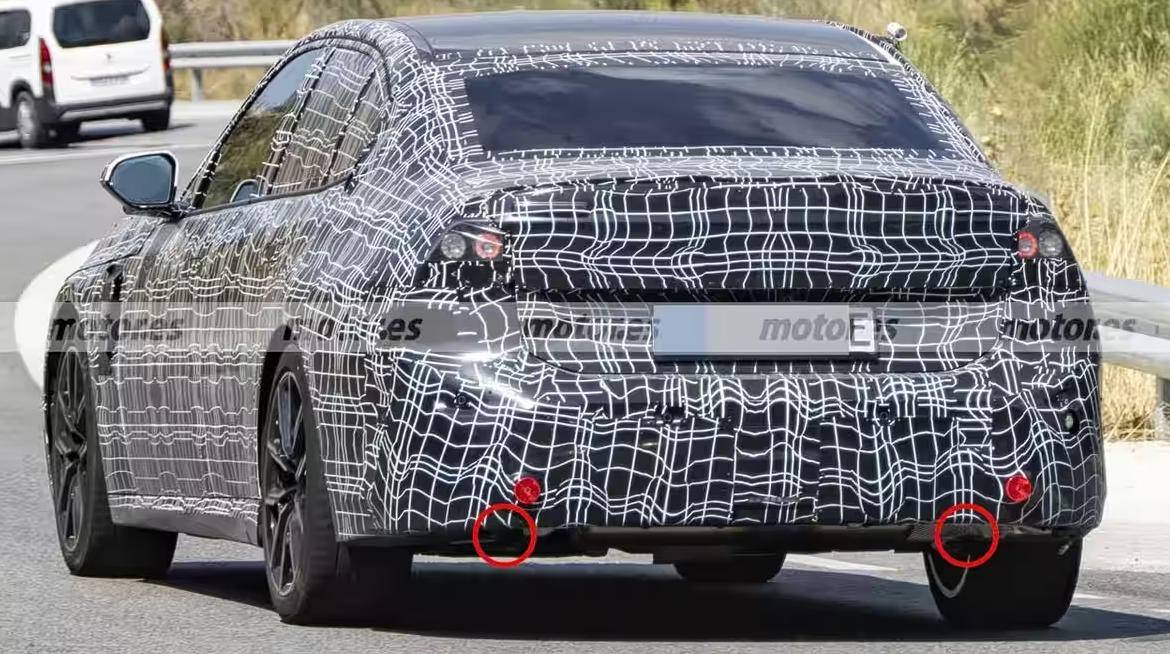 至于車尾,諜照里的圓形尾燈應該只是測試用版本,量產版應該會采用造型更炫酷的尾燈造型。此外,車尾下方可以看到兩側的排氣管布局,這也意味著其會是臺帶有發動機的插混版車型。