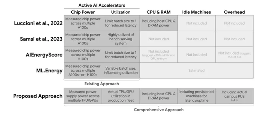所以,谷歌針對AI服務時的實際情況,開發了一套更為全面的方法來計算能源消耗,包括以下幾個部分: