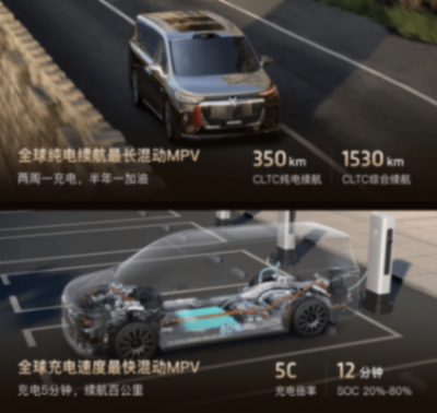 同時,新車搭載5C超充技術,電量從20%充至80%僅需12分鐘,是目前充電速度最快的混動MPV。也就是說,長途出行不到一杯咖啡的時間,就能繼續(xù)出發(fā),打消續(xù)航焦慮。另外,新車系統(tǒng)綜合功率達到490kW,峰值扭矩915N·m,零百加速5.9秒,高性能MPV在關鍵時刻不拉胯。另外虧電狀態(tài)下CLTC油耗僅5.2L/100km,用車成本也相當可觀。