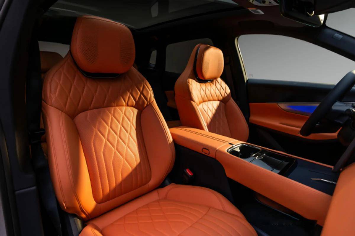 并且強化乘坐舒適屬性,從次低配車型開始,四座均支持座椅通風、按摩和加熱功能,前排座椅還可以實現(xiàn)座椅+靠背吸風設計,二排提供小桌板,以及7L的雙開門冷暖冰箱,從零下6度到50度控溫,解鎖更多用車場景,也是區(qū)別于同價位同級別車型的亮點設計之一。天窗升級為全景天幕,帶電動遮陽,提供哈曼卡頓音響系統(tǒng),帶23揚聲器,支持7.1.4全景聲模式和AR-HUD投影結合。