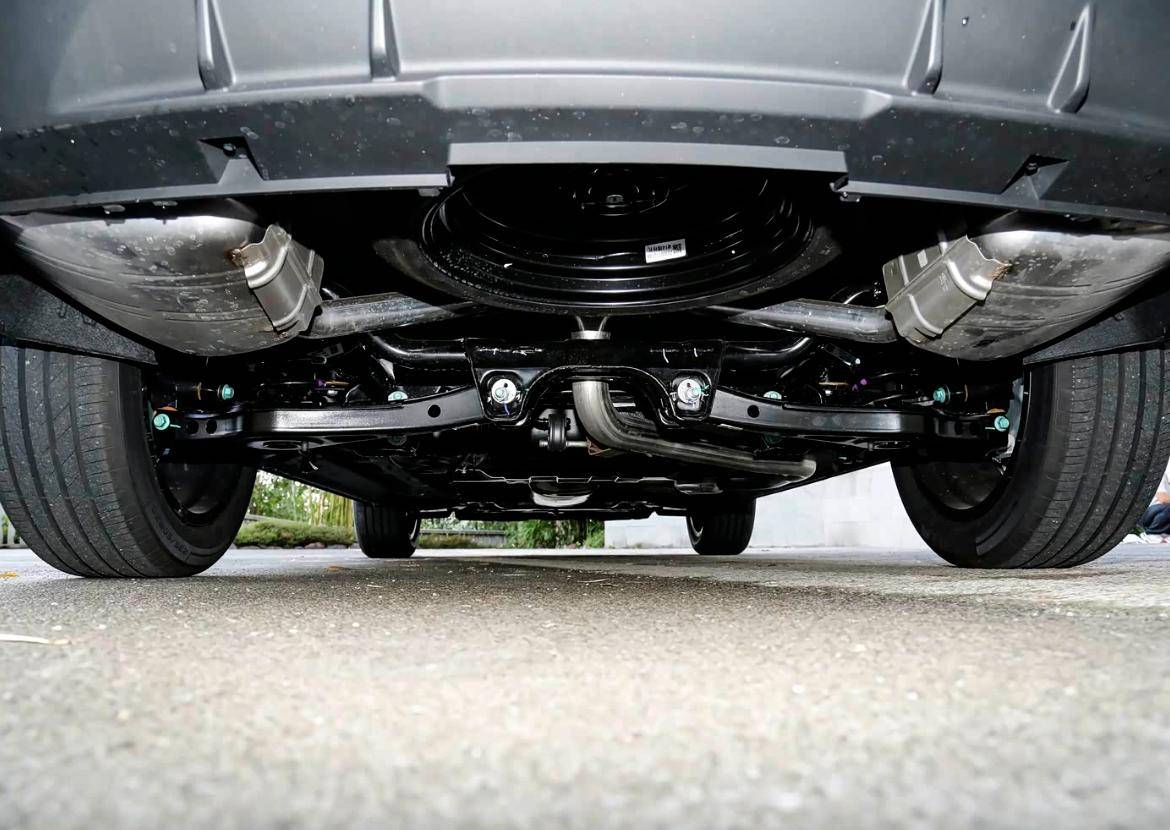 車尾采用貫穿式尾燈設計,左右尾燈及其內部燈組均采用豎向條紋處理。后杠下方配有雙邊單出排氣,而且都是真排氣孔。