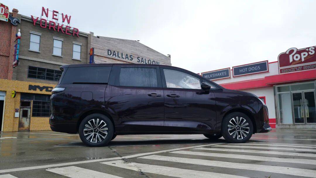 側面則延續MPV經典的方正輪廓,確保空間利用率最大化。而標配的雙側滑門除了比同級別的外拉門進出更方便之外,它還有自己的巧妙之處——首先,側滑門軌道隱藏于窗線之下,輔以傾斜設計,借助重力即可輕松關閉,關門時既省力又優雅。其次,側滑門的門洞高度達1145mm,配合低門檻與B柱拉手設計,老人與孩子都可以輕松上下車,這項體驗比很多新能源MPV更好。
