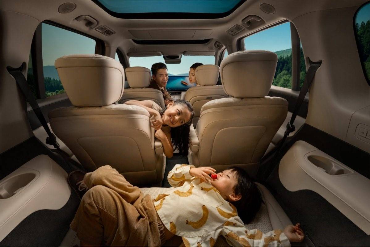 新車尺寸為5205*1998*1800mm,軸距3120mm。第二排腿部空間達1022mm,第三排支持電動調節。通過語音指令可放平座椅形成1.8米休息區域,后備箱容積擴展至1590L。