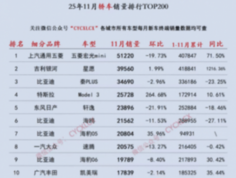 讓人意外的是,五菱宏光MINIEV位居榜首、也是所有車型中的銷量冠軍,單月銷量達到5.13萬輛,前11個月累計銷量達到了40.8萬輛、同比增幅高達71.5%。而星愿、秦PLUS分列二三位,月銷量分別是3.96萬輛、3.46萬輛。同時吉利星愿還是保持了年度銷量冠軍的位置,累計銷量接近42萬輛,非常夸張。