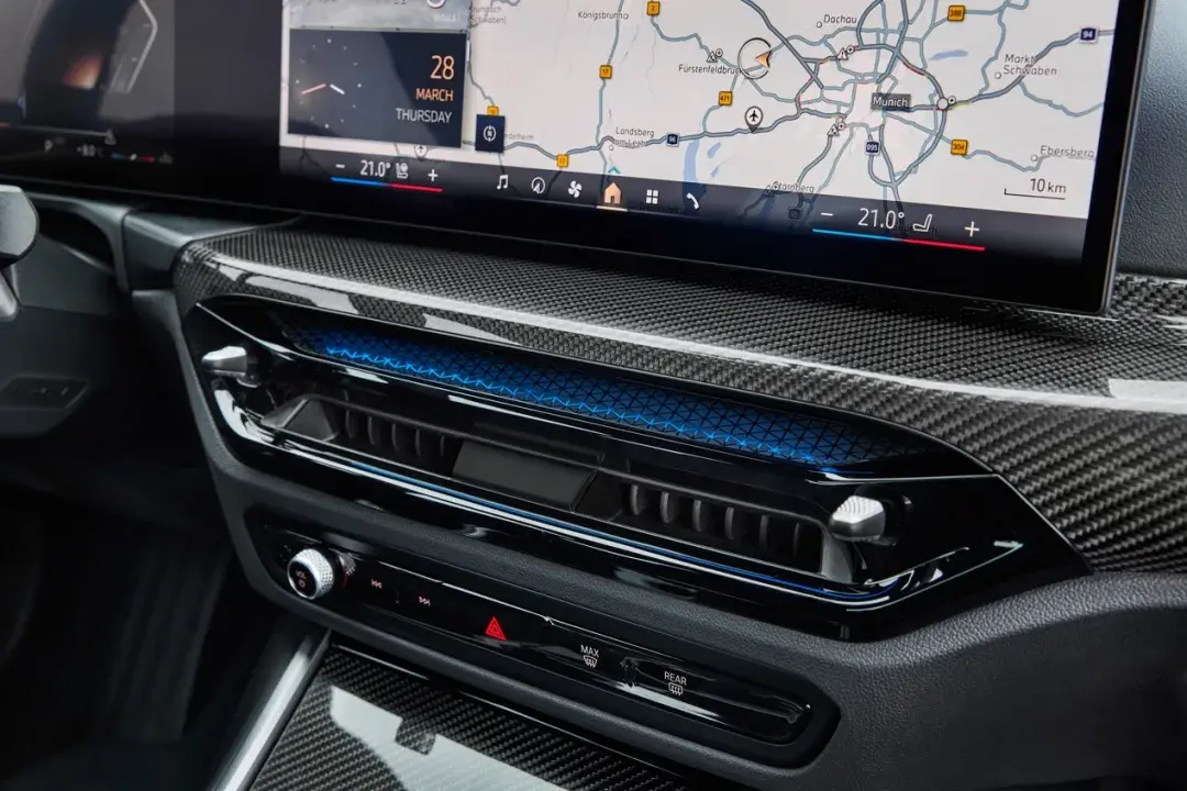 進入車內,最明顯的變化是新的平底D型方向盤,毫無疑問,新的方向盤讓它運動感更強。同時,車輛內飾的精致感也有提升,此前傳言變成了現實,車內增加了有紋理的氛圍燈,擋桿、一鍵啟動、iDrive旋鈕等也換成了更漂亮的水晶材質,真的很吸引人,當然它沒有雞腿擋桿確實有些遺憾,但配合換擋撥片,開起來還是很過癮的。
