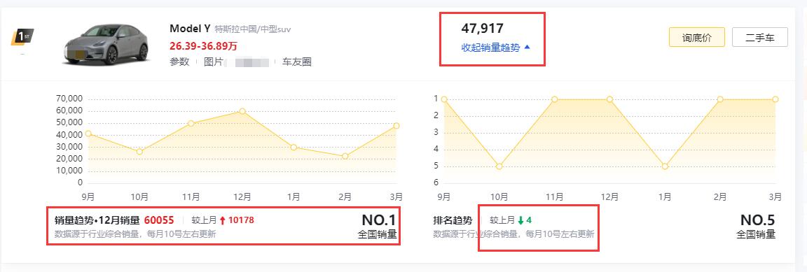 我們直接從數據就能看出來,就拿特斯拉的主力車型ModelY來說,3月份的銷量成績特別猛,達到了4.7萬輛,并且還是全國銷量的最強王者,但相較于排名趨勢而言,特斯拉正在被自己的對手不斷地超越,排名是一降再降,如今已經一路跌到了全國銷量的第五名,這對于大企業來說,這個銷量信號真的是特別不樂觀的。