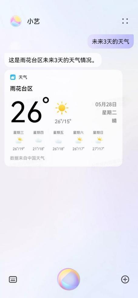 高考期間,了解天氣情況非常重要。只要喚醒小藝,提問“明天的天氣如何”,即可快速獲取天氣預(yù)報,從而可以合理安排出行計劃,選擇適當(dāng)?shù)囊挛铮苊馓鞖庾兓绊懣荚嚑顟B(tài)。