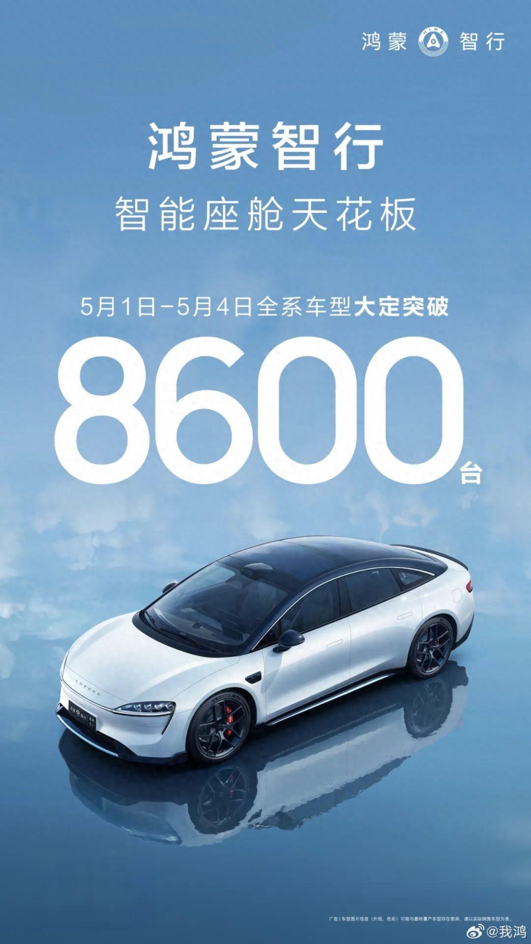 戰報顯示,華為智選車鴻蒙智行5月1日-4日全系車型大定突破8600臺,預計今日結束也會公布假期5天的數據。